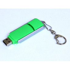 Флеш-накопитель промо прямоугольной формы, выдвижной механизм , зеленый. С кольцом для ключей, цепоч..