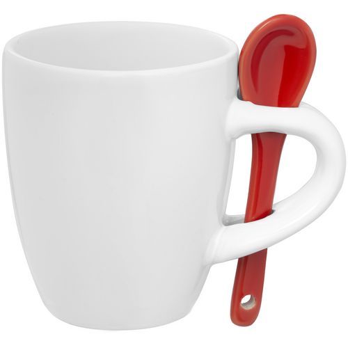 Кофейная кружка Pairy с ложкой, белая с красной -110мл-114_5080515