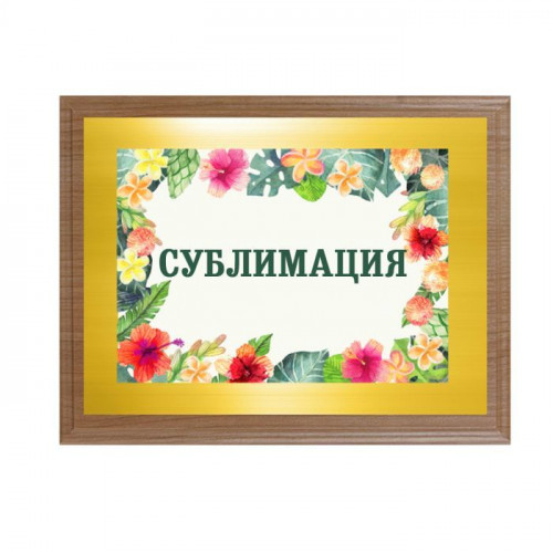 Плакетка 23х30 см, с нанесением на металлической пластине (глянцевое золото), орех-114_6950207