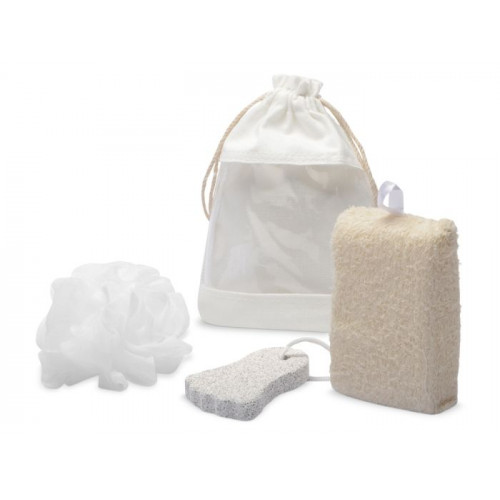 Набор для ванны состоит из мочалки, губки и пемзы, упакованных в симпатичный мешочек. Этот набор станет прекрасным подарком, который содержит необходимые для банных процедур приспособления на любой вкус: как видите, здесь предусмотрены и мочалка, и губка, что дает выбор адресату. Прозрачное окошко мешочка, на котором можно напечатать логотип, позволяет красиво преподнести содержимое и придает набору нарядный внешний вид.