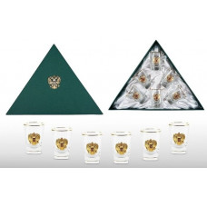 Шесть стопок 50 мл. с золотой отводкой и позолоченными накладками «ДВУГЛАВЫЙ ОРЕЛ». Материал барель..