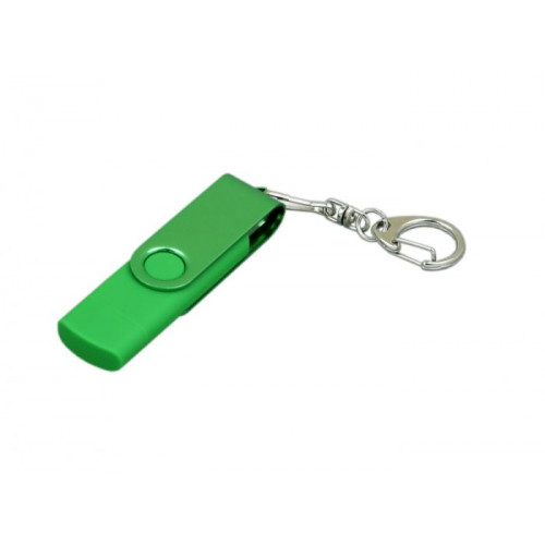 Флеш-накопитель поворотный механизм, c дополнительным разъемом Micro USB, с металлическим клипом в цвет корпуса, зеленый