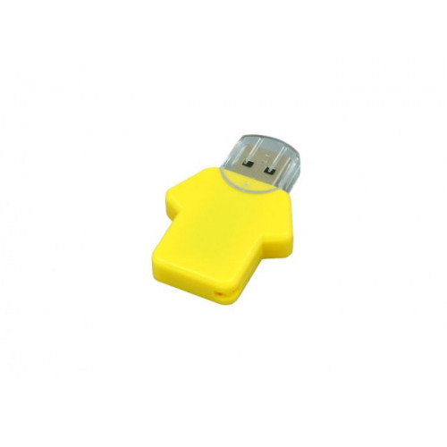 Флеш-накопитель в виде "Футболки", желтый. Яркая и компактная флешка под нанесение логотипа. 6 цветов позволят подобрать флешку под нанесение вашего логотипа в фирменной цветовой гамме. Флешку можно подвесить на шнурок, цепочку или преподнести в подарочном футляре.