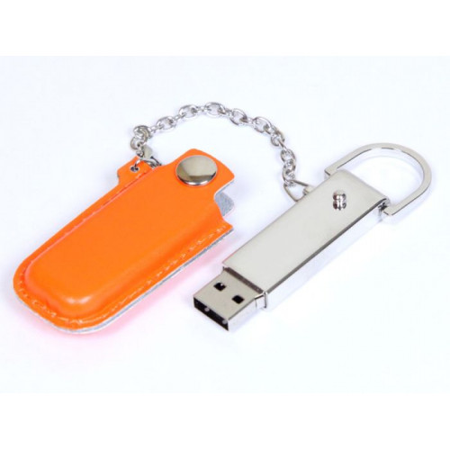 Флешка массивный корпус с кожаным чехлом , оранжевый